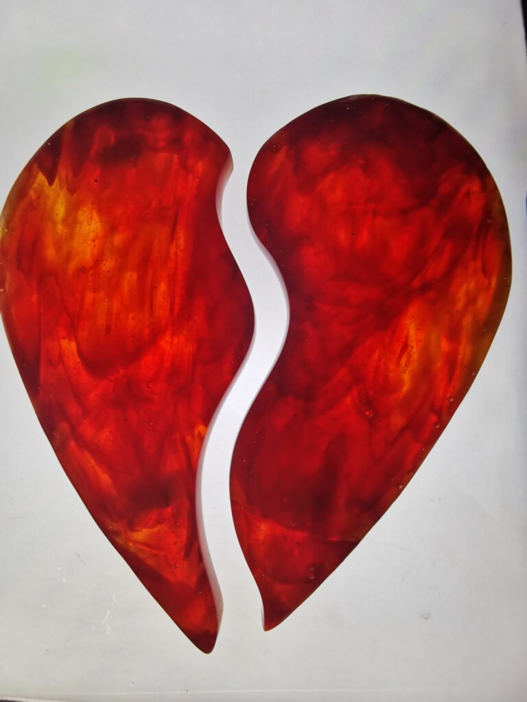 Ponadto jako nieliczni wykonujemy szklane krzyże i serca ze szkła kolorowego (barwione w masie) wytapiane w formie.
